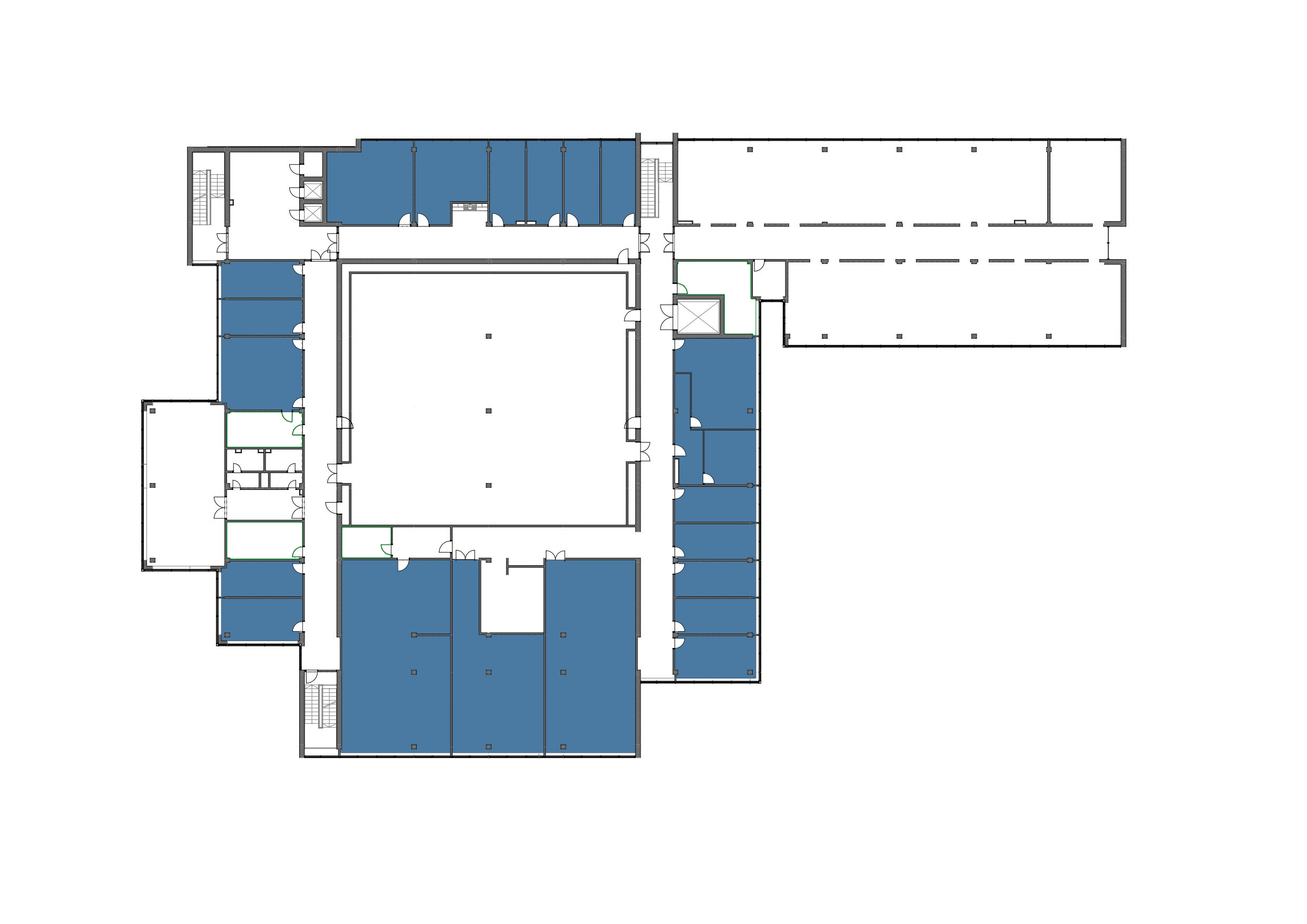 Kancelárske priestory predstavujú najväčšiu časť budovy. Pre