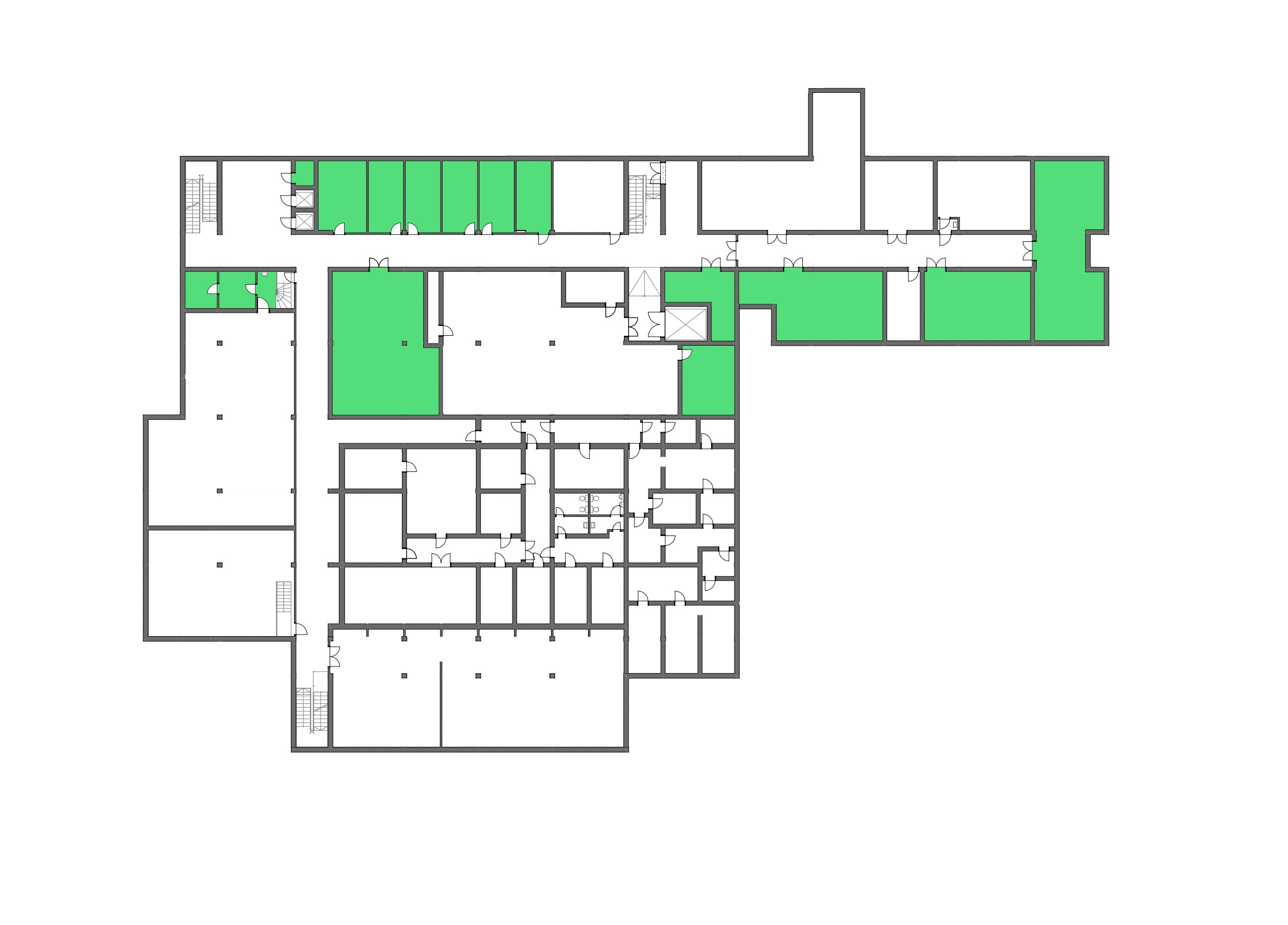 Kancelárske priestory predstavujú najväčšiu časť budovy. Pre