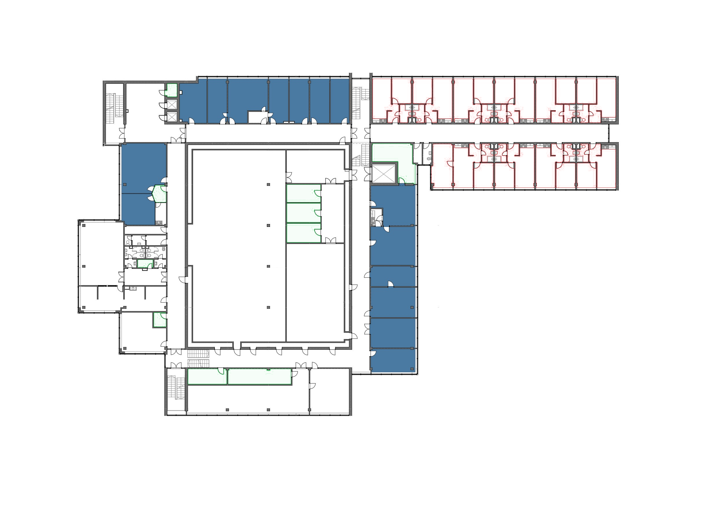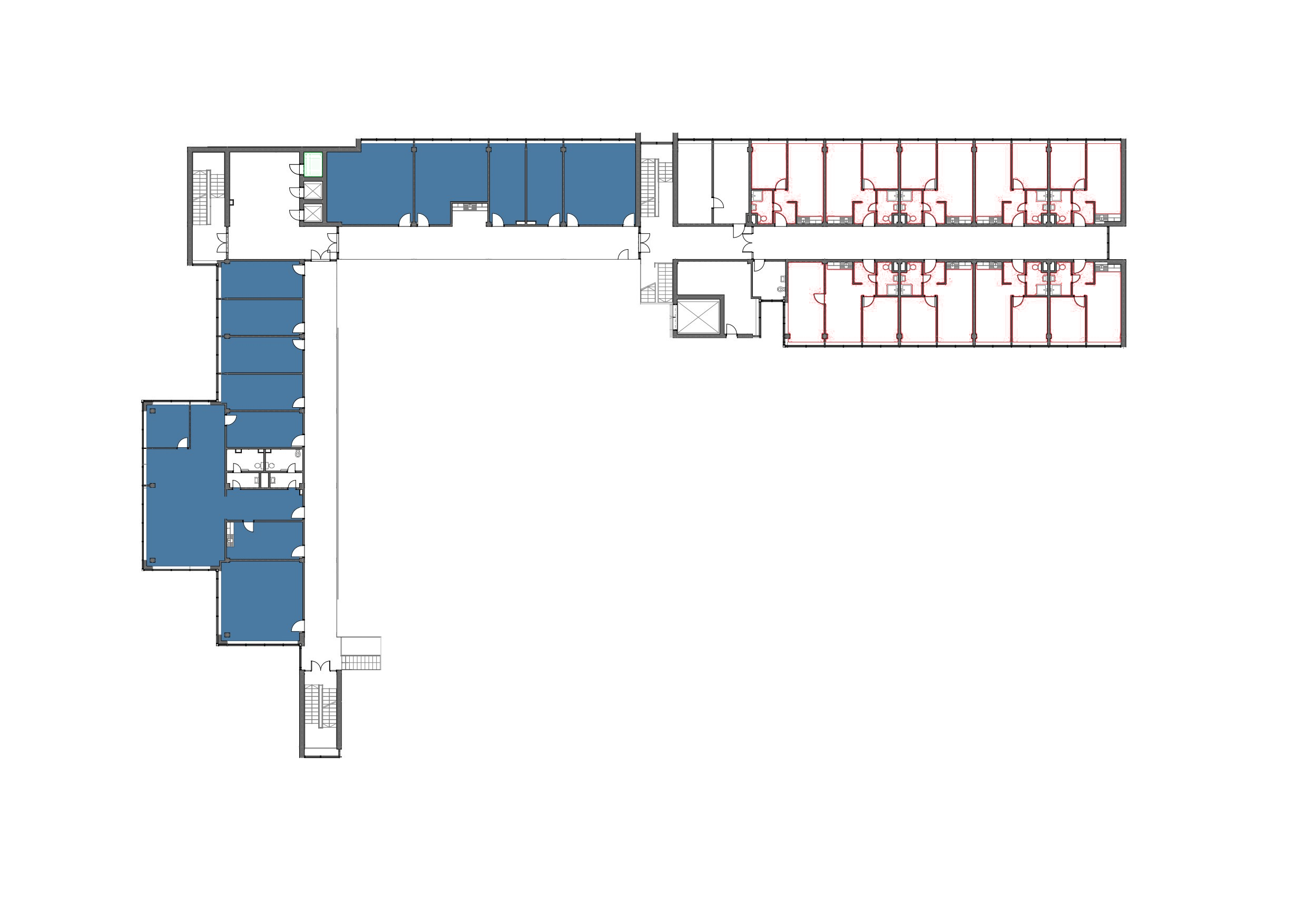 Kancelárske priestory predstavujú najväčšiu časť budovy. Pre