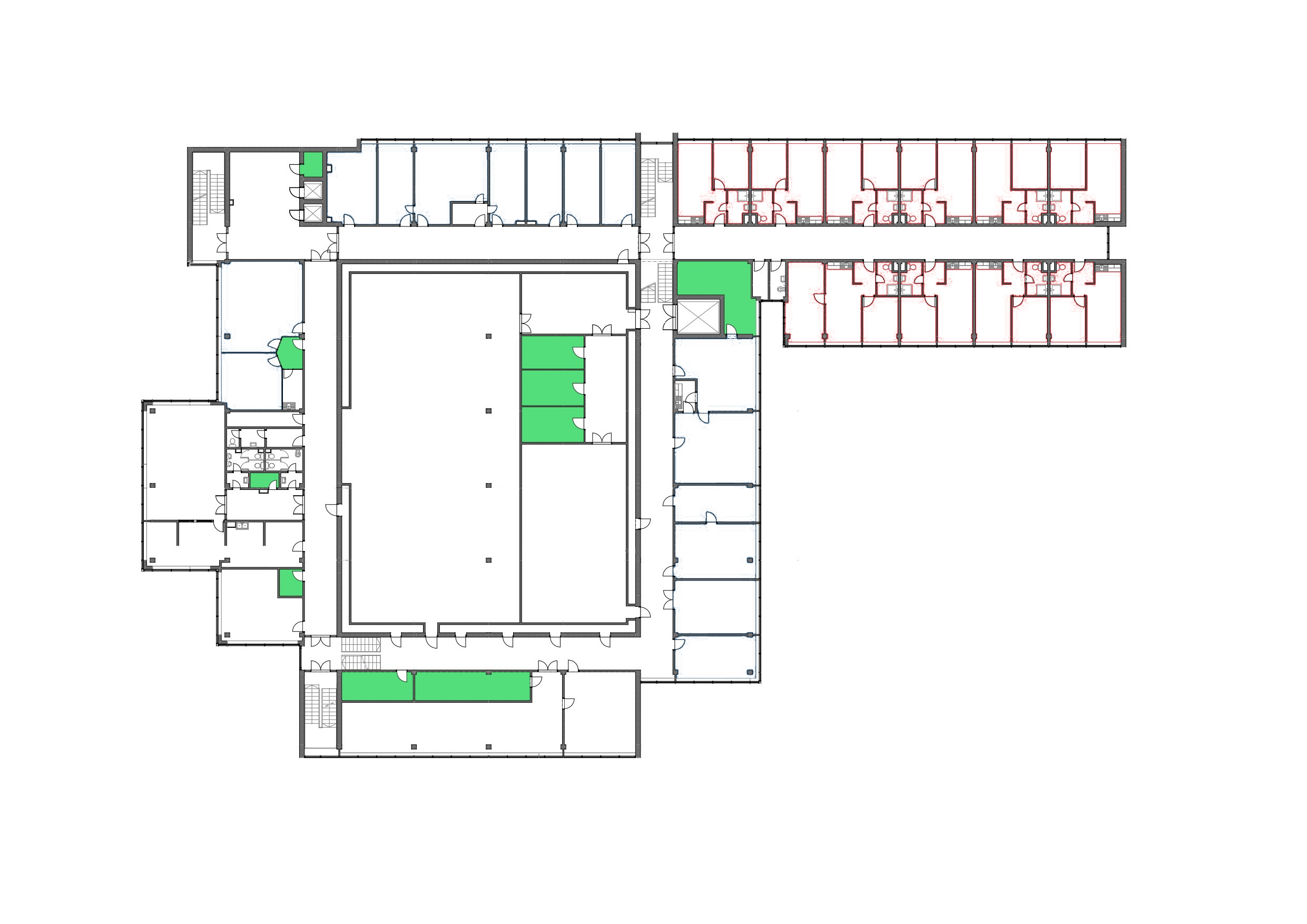 Kancelárske priestory predstavujú najväčšiu časť budovy. Pre